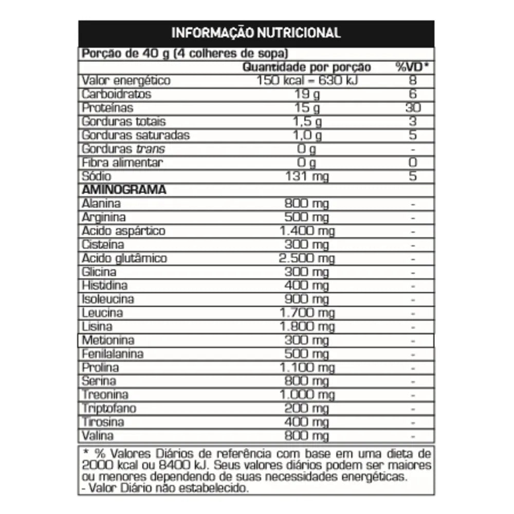 | Valor Energético | 150 kcal = 630 kJ | 8 | 8 |